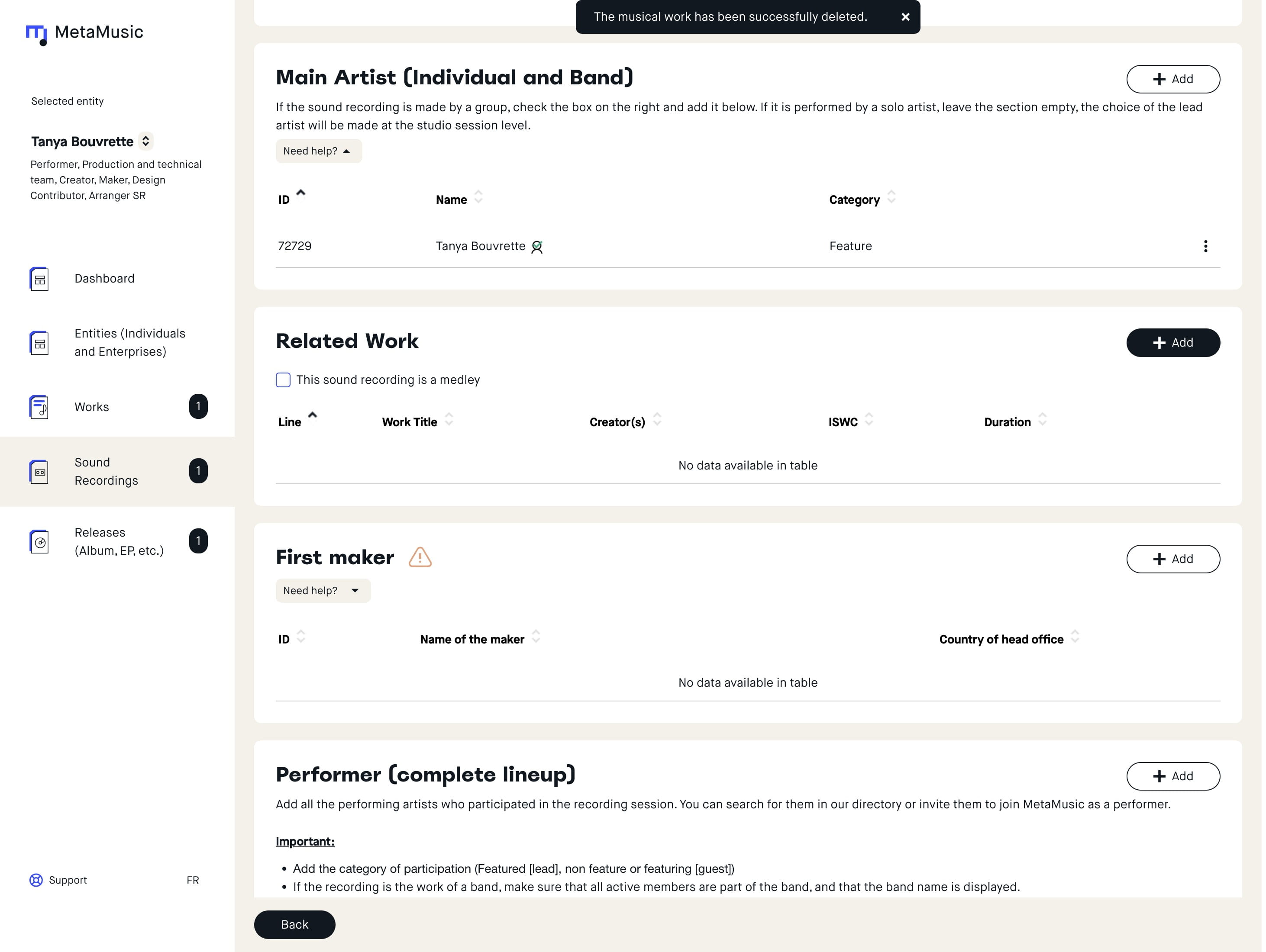 Sound Recording – Associated Work – How to link credits for a work that does not exist in the system (Covers)